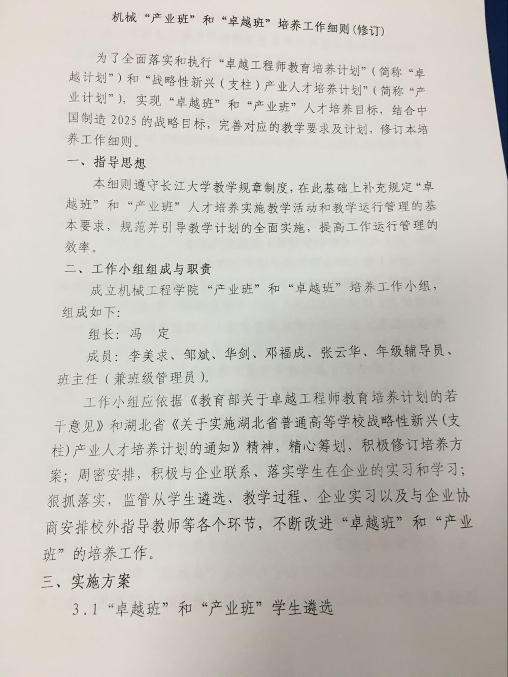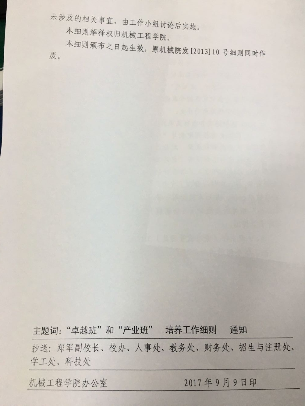 关于印发机械“产业班”和“卓越班”培养工作细则(修订)的通知