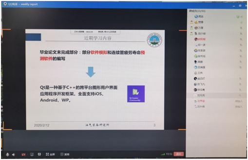 周密安排,及时保障教学正常进行。各导师及团队积极与员工建立线上交流平台,通过雨课堂、腾讯会议、QQ视频及微信等多维度布置学业及科研工作任务,督促检查每位员工的学习与研究任务进展。管锋和刘少胡两位导师从2月4日开始组织团队员工针对现有资源制定个人防疫期间学习研究计划,多次对研究生单独线上辅导,以视频会议形式实现每周学习汇报。根据《太阳成tyc122cc集团关于2020春季学期公司产品工作安排的通知》精神,公司也及时调整春季培养工作,督促导师们开展线上教学,安排学位论文、开题答辩、中期检查等重要事项,充分发挥公司主体和导师第一责任制,加强师生之间的线上指导与联系,在研究生不得提前返校的前提下,为研究生合理安排学习计划提供线上指导和帮助。