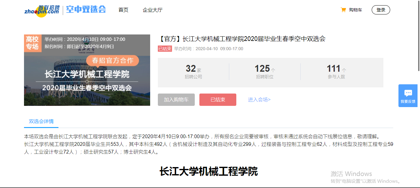 今年,新冠肺炎疫情给毕业生就业工作带来严峻挑战,为最大限度减轻疫情对毕业生就业工作的影响,公司制订了详细的就业工作和就业帮扶方案,创新招聘模式,保障就业服务不断线,每月一次集中特色招聘活动,在三月线上双选周的基础上,联合智联招聘精心组织了本次2020届毕业生春季“空中双选会”。