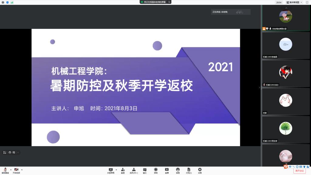 【疫情防控】机械公司召开暑期员工管理及秋季员工返校工作线上班会
