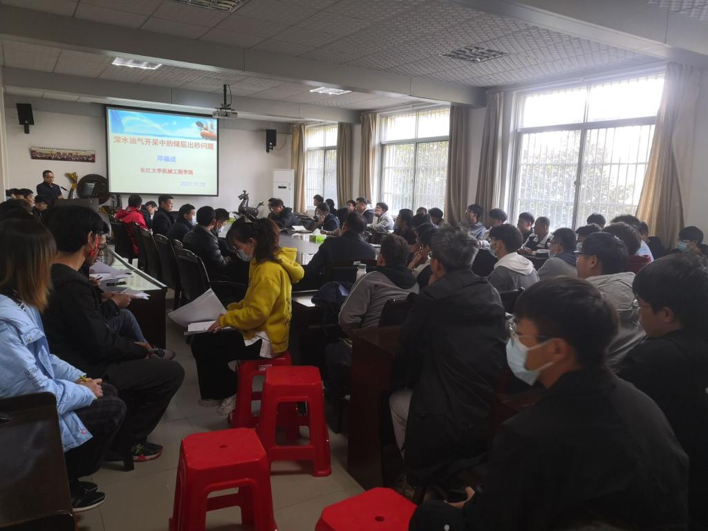 报告一由公司邓福成副教授对深水油气开采中的储层出砂问题进行汇报,他从出砂的工程解释、出砂的危害以及防沙的措施等方面进行了介绍。同时结合目前深水油气开发所面临的出砂问题,分析了出砂的原理,并对所分析的出砂原理进行试验验证和数值模拟验证。