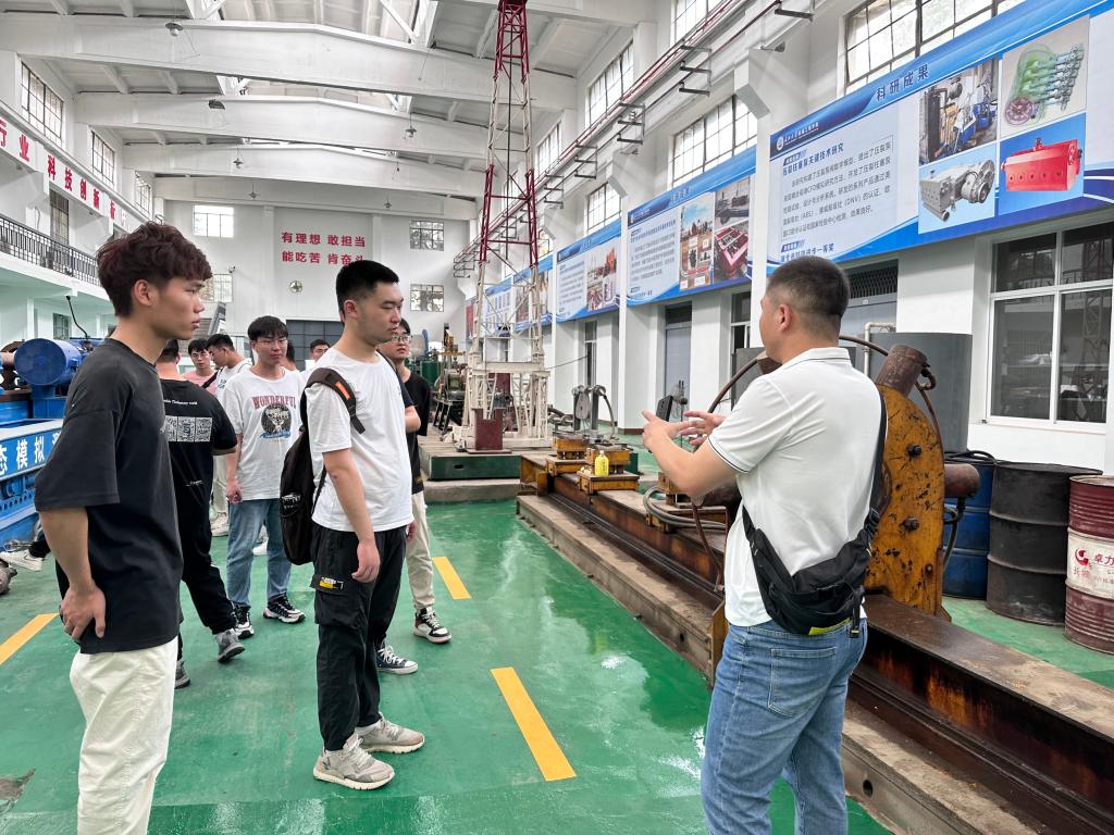 开营仪式结束后,万锋老师带领同学们参观了公司部分实验室,介绍了油气钻完井工具等现代石油装备的发展,进一步增进了同学们对太阳成tyc122cc集团的了解。