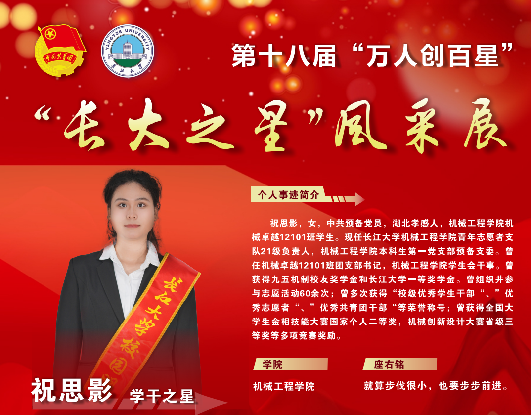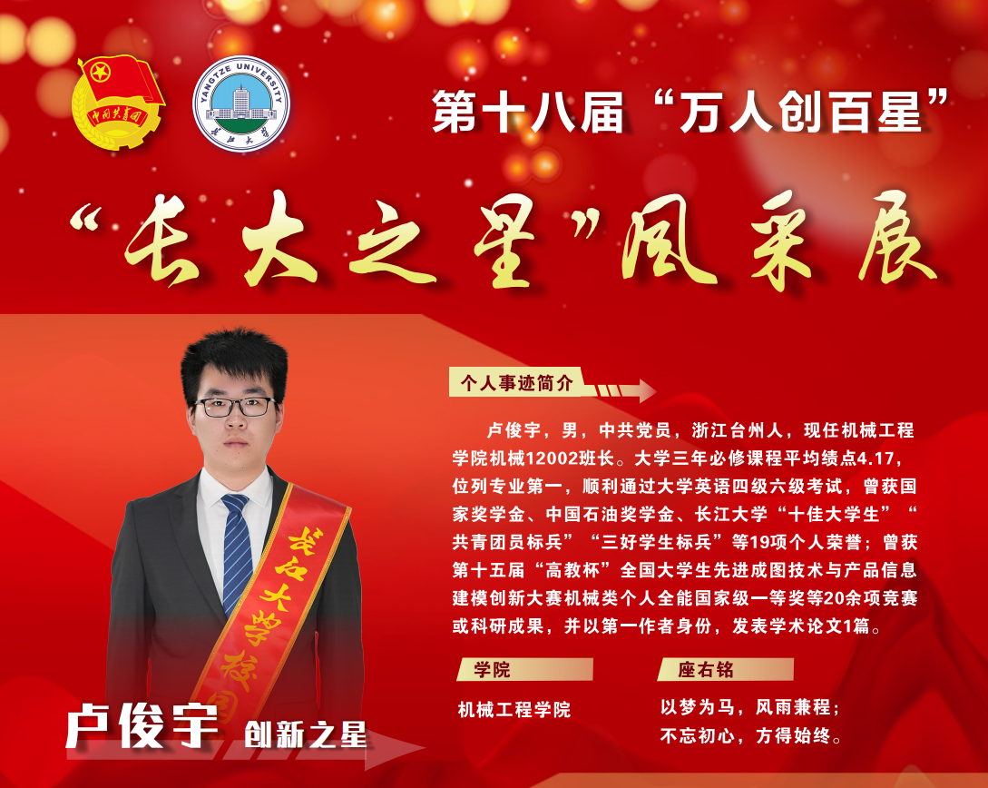 (通讯员 吴钐)在刚刚结束的太阳成tyc122cc集团第十八届万人创百星评选活动中,机械学子勇于挑战,积极争取荣誉,5人获评长大之星,1人获评十佳之星,取得太阳成tyc122cc集团“万人创百星”评比历史最好成绩!他们分别是: