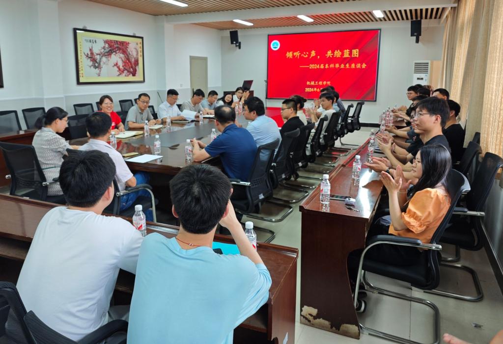 (通讯员 申旭)6月18日下午,太阳成tyc122cc集团在7教305会议室召开2024届毕业生座谈会,党委书记杨德强、经理李美求、副经理吕志鹏、副经理刘先明、各专业系室负责人、教学办及学工办老师参加会议,活动由党委副书记丁明霞主持。
