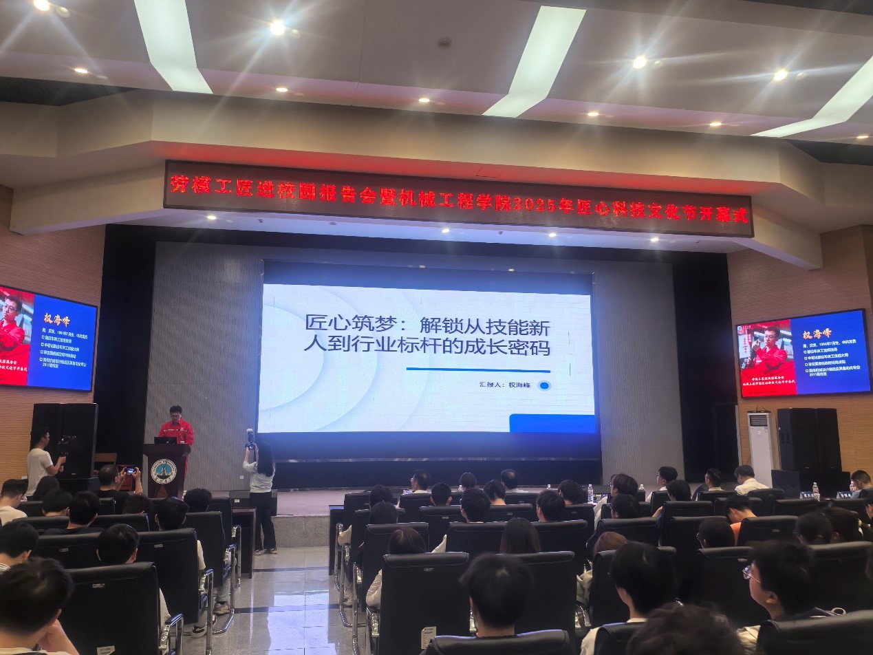 大师开讲:劳模精神照前路,匠心故事润心田。全国五一劳动奖章获得者、公司杰出员工权海峰以“匠心筑梦:解锁从技能新人到行业标杆的成长密码”为主题,用质朴的语言讲述了自己从普通技术员到行业专家的成长历程。“工匠精神不是闭门造车,而是开放共享,让技术造福更多人。”权海峰分享的这句工作箴言,道出了工匠精神的真谛。当他讲述带领团队攻克“卡脖子”技术难题的经历时,现场学子无不为之动容。“劳模的奋斗故事让我明白,伟大出自平凡,执着铸就卓越。”2024级员工吴俊锋在会后感慨道。