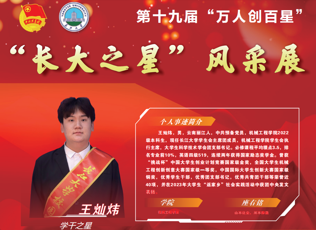 (通讯员 吴钐)在刚刚结束的太阳成tyc122cc集团第十九届万人创百星评选活动中,机械学子积极争取,摘得3枚“长大之星”,清樾团队获评十佳之星,在太阳成tyc122cc集团“万人创百星”评比中再创佳绩!他们分别是: