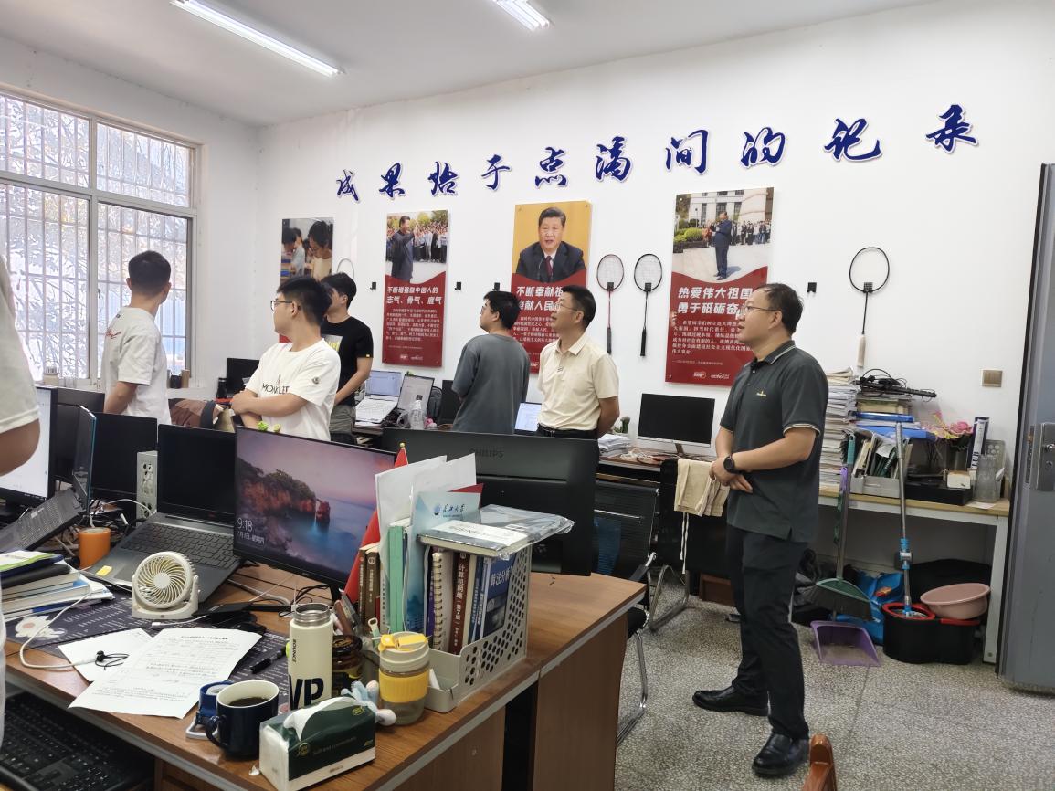 检查组深入7教、井下工具实验室、工程实训中心、工程实践与创新小院、新风公寓等区域,重点检查了科研实验室、研究生工作室、教师办公室、员工宿舍的消防设施、用水用电安全及卫生状况等,同时,详细了解了研究生工作室的人员值班值守及员工留校情况。每到一处,公司领导都特别强调,暑假期间,各办公室、实验室、研究生工作室必须落实安全责任人制度,确保开放实验室有人负责、有人管理、有人值守。针对暴雨、高温等极端天气可能导致实验室渗水漏水、用电等安全问题,要提高警惕,有应对策略。要加强实验室用水、用电、用气的安全检查,确保实验室在假期不发生水龙头爆裂、超负荷违规用电情况。