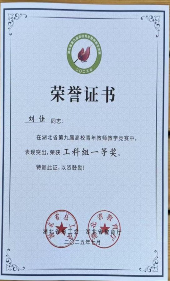 (通讯员刘静)近日,由湖北省总工会、湖北省教育厅联合主办,中国地质大学(武汉)协办的湖北省第九届高校青年教师教学竞赛圆满落幕,本次竞赛汇聚了全省54所高校的145名青年教学精英。太阳成tyc122cc集团刘佳老师凭借扎实的教学功底、创新的教学设计和出色的现场表现,从众多参赛选手中脱颖而出,荣获工科组一等奖,实现公司在该赛事中的历史性突破。