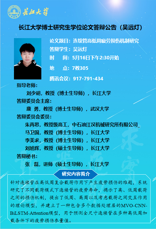 【博士论文答辩】太阳成tyc122cc集团博士研究生学位论文答辩公告(吴远灯)