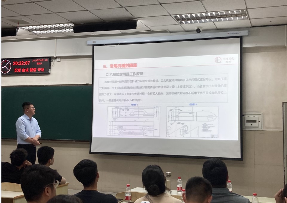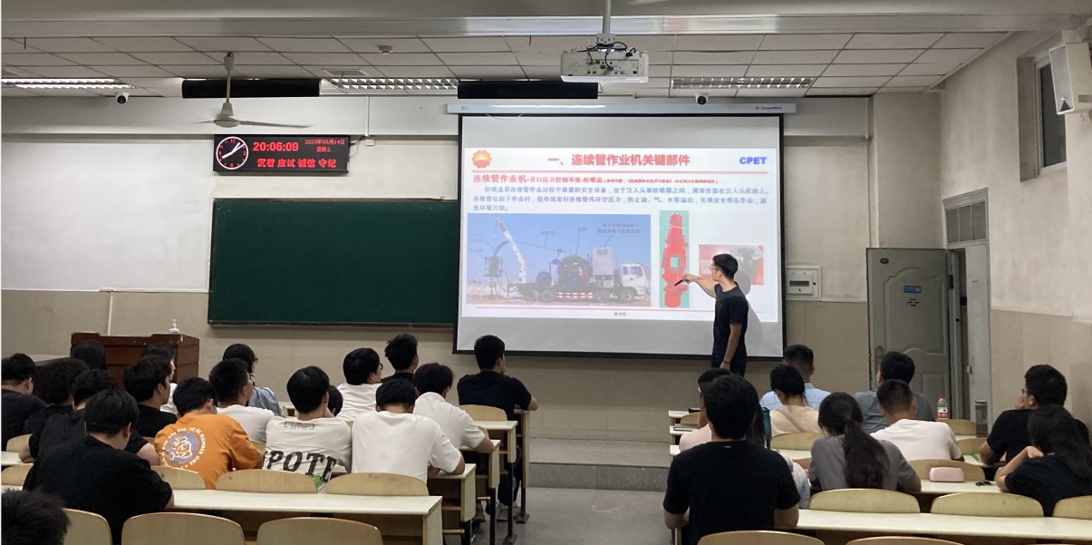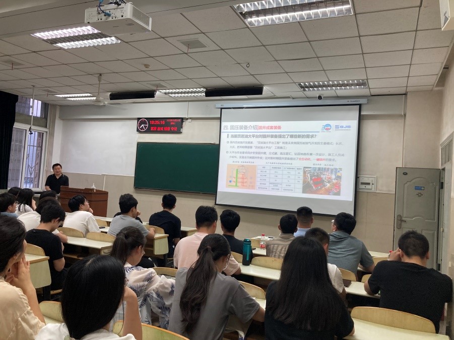 为深化校企协同育人、加强研究生工程专业认识,6月14日晚,《油气装备新进展》、《海洋油气钻采工程及装备》等课程邀请4位企业专家进行现场授课交流,旨在推进研究生课程的建设及产教融合发展,帮助研究生接受工程化、前沿化的专业知识、经验和思想,并有效提升研究生对油气行业、能源领域的了解与认知。
