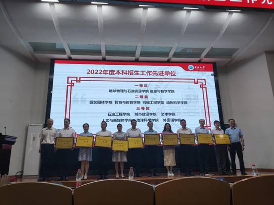 会上,公司对2022年度本科招生工作先进个人、突出贡献奖和先进单位进行了表彰。27名招生工作先进个人和19个先进单位获得表彰。副董事长郭海敏宣读表彰文件,校领导分别为获奖单位和个人颁奖。
