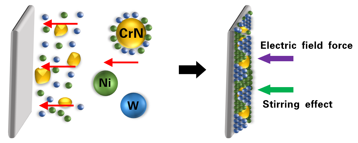 图1纳米复合涂层Ni-W-CrN的电沉积装置及原理
