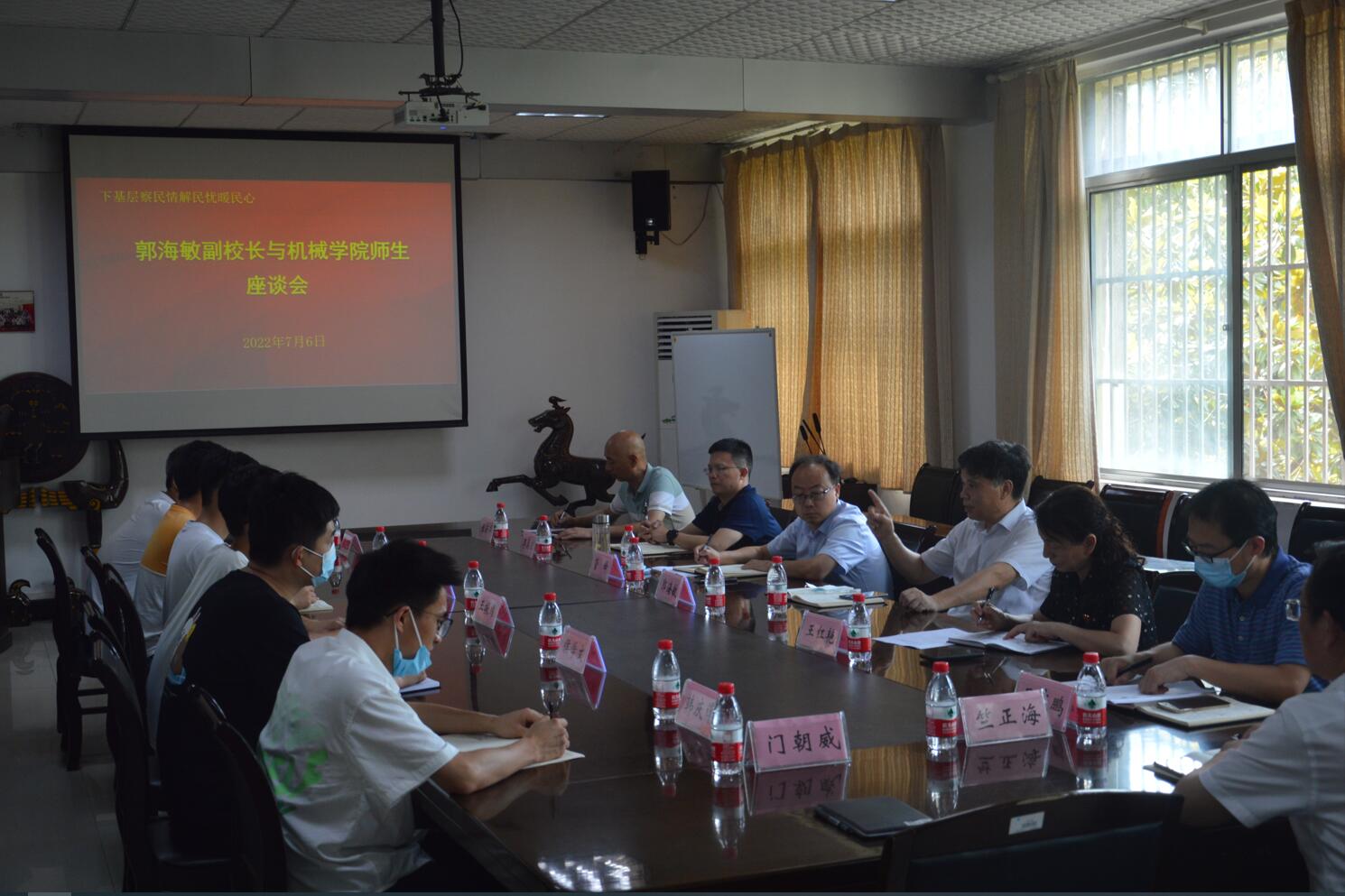 7月6日下午,副董事长郭海敏到机械公司督导暑期工作,与公司师生交谈,全体公司领导、暑期留校研究生代表和校领导联系“三个一”王振耀同学参加座谈,公司党委书记王红艳主持。
