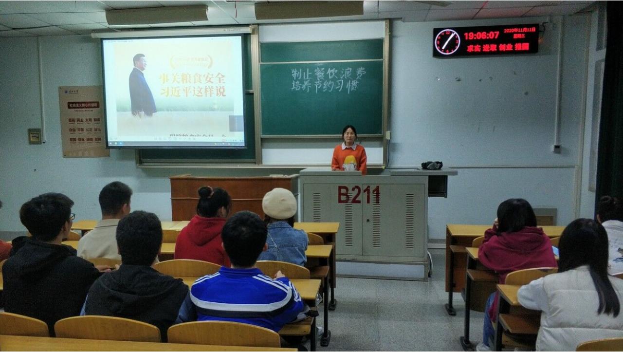 除了集中研讨,各班于10月21日至11月10日开展主题班会,内容为“制止餐饮浪费,培养节约习惯”,通过利用PPT、图片、视频等形式,大家充分了解我国目前的餐饮浪费现状,传达学习习近平总书记对制止餐饮浪费行为的重要指示,引导同学们树立勤俭节约的意识。同学们表示,自己一定要培养节约习惯,并影响和带动身边人。