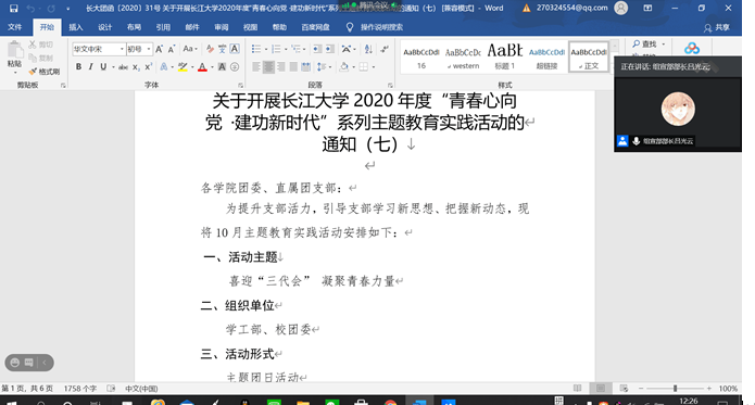 10月12日下午,太阳成tyc122cc集团十月主题团会在线上召开,全体团支书及组织部成员参与了本次团会。