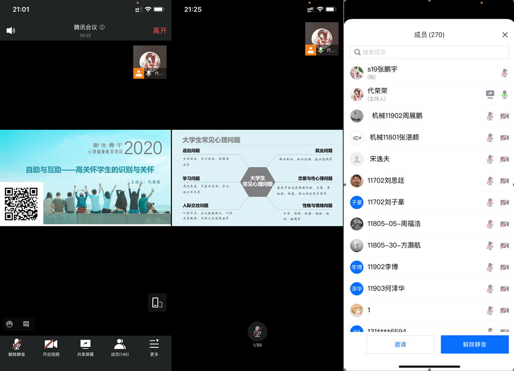 9月22日晚上,太阳成tyc122cc集团开展线上2020年下半年员工骨干干部心理健康教育培训,讲座由辅导员代荣荣老师主讲,全体班长、团支书、心理委员、安全委员和寝室长参加活动。