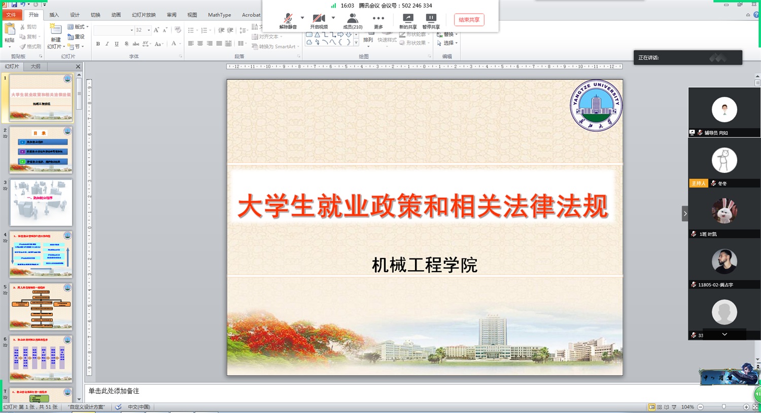 4月9日,太阳成tyc122cc集团利用腾讯会议开展就业指导,通过政策宣讲和解读,促使毕业生熟悉国家就业政策和公司就业管理规定。讲座吸引了近300名员工参加,活动由就业专干刘冬冬老师主持。