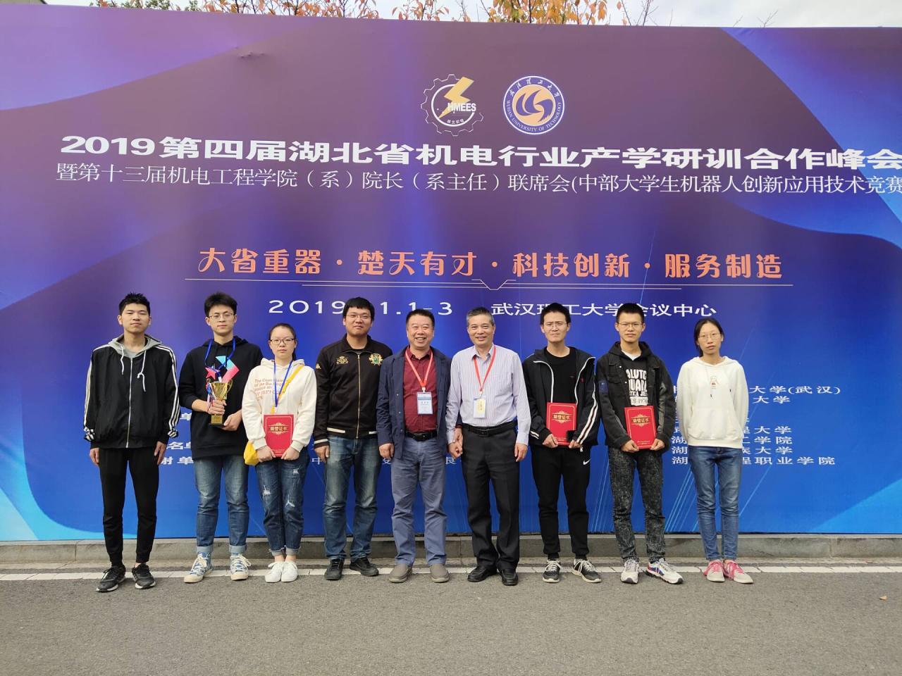 2019年11月2日,太阳成tyc122cc集团机械学子在2019首届中部(武汉)“华中数控杯”老员工机器人应用技术创新竞赛中荣获三等奖两项、优胜奖一项,并获7000元奖金,奖金总数在湖北省所有参赛高校中排名第四。