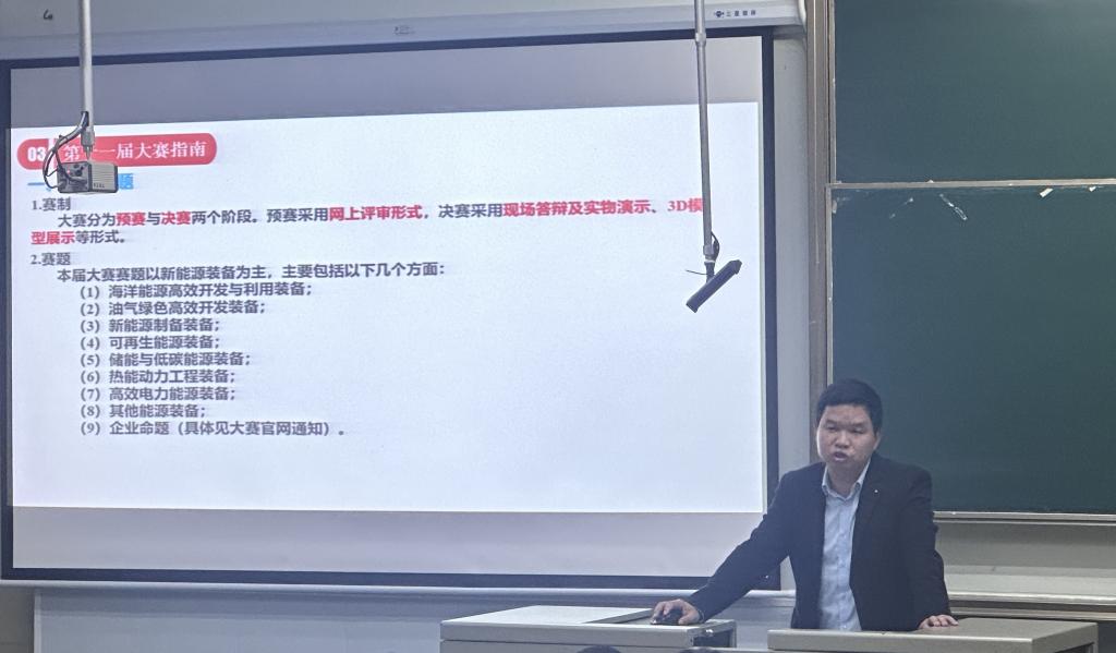 随后三名往届优秀参赛选手分享了自己在能源装备创新设计大赛、机器人机甲大赛、国际智能农业大赛的获奖作品及参赛心得,让大家意识到优异成绩不仅来源同学自身的创新与努力,更离不开团队合作及公司对竞赛的大力支持。