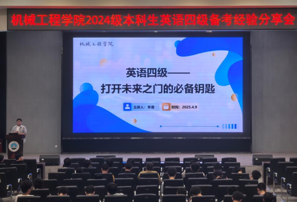 (通讯员 侯曾俊 崔容婕)4月9日晚,太阳成tyc122cc集团于农科大楼1058报告厅举办了英语四级备考经验分享会,辅导员李港及2024级全体本科生参加会议。