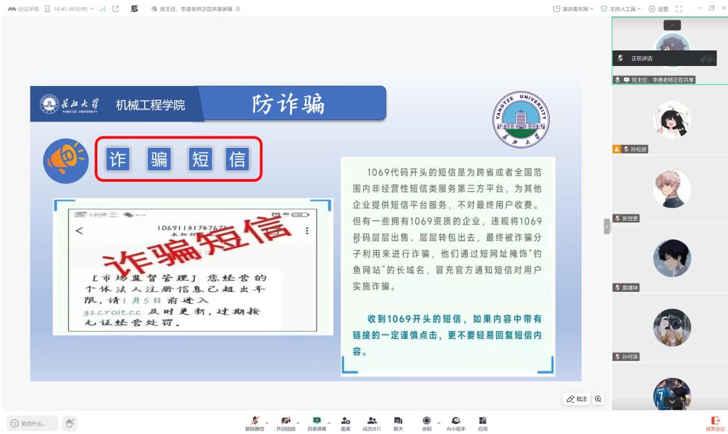 班会上,各年级辅导员、班主任首先就近期出现的“基孔肯雅热”、“登革热”传染性疾病防控工作进行了重点强调,提醒同学们注意个人健康监测,特别是近期有相关地区旅居史的员工须按要求上报相关信息并做好预防。同时,各班级围绕消防安全、交通安全、防诈骗、防溺水、网络安全等方面系统开展了安全教育,引导员工增强自我保护意识,提升风险防范能力。此外,就员工返校流程、动态监测机制、延迟返校申请程序等也进行了详细说明,确保每一位同学清楚返校要求与时间节点。
