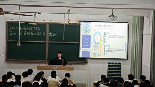 本次宣讲由“匠心之光”实践队队长李佳文主讲。他围绕调研内容、突出问题、现实意义三个维度,系统呈现了实践队的调研成果。